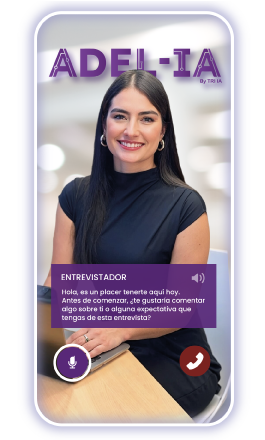 ADEL realiza entrevistas en video 24/7, analiza respuestas con IA y clasifica candidatos por afinidad al cargo, para que tu equipo se enfoque en la estrategia y la decisión final.